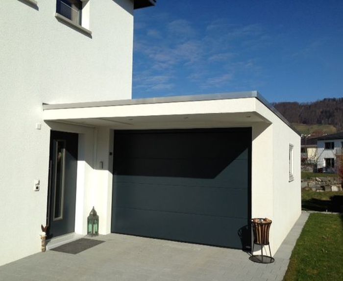 Die Bauherrschaft wollte “trockenen Fusses” von der geräumigen Garage zur Haustüre gelangen können. Üblicherweise können Vordächer mit 150 cm Ausladung nur in einer teuren Variante in Ortbeton erstellt werden. Die PFAFF-Ingenieure haben aber eine Lösung gefunden und das Vordach im Garagenwerk gleich mitbetoniert. Als “Tüpfelchen” wurden im Vordach sogar LED-Spots verbaut, die den Hauszugang auch abends und im Winter komfortabel und spektakulär beleuchten. Mit PFAFF-Garagen werden die Kundenwünsche umgesetzt, damit über viele Jahre davon profitiert werden kann.