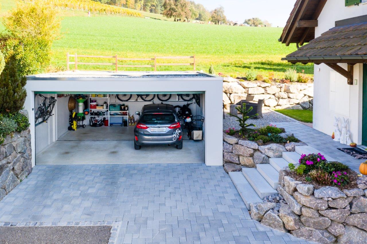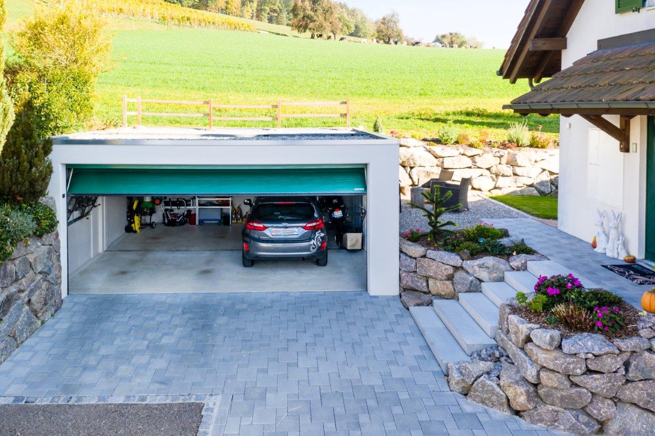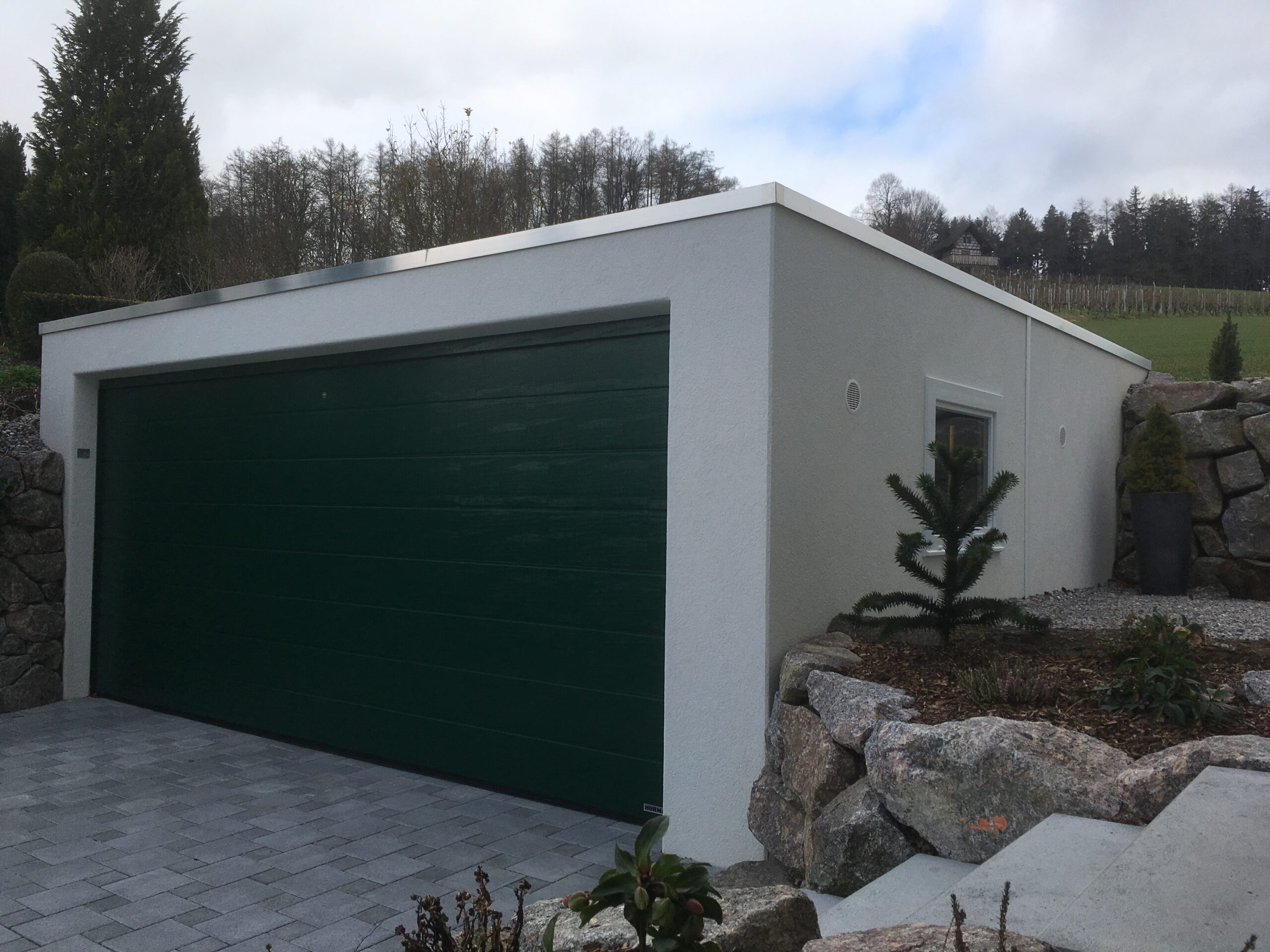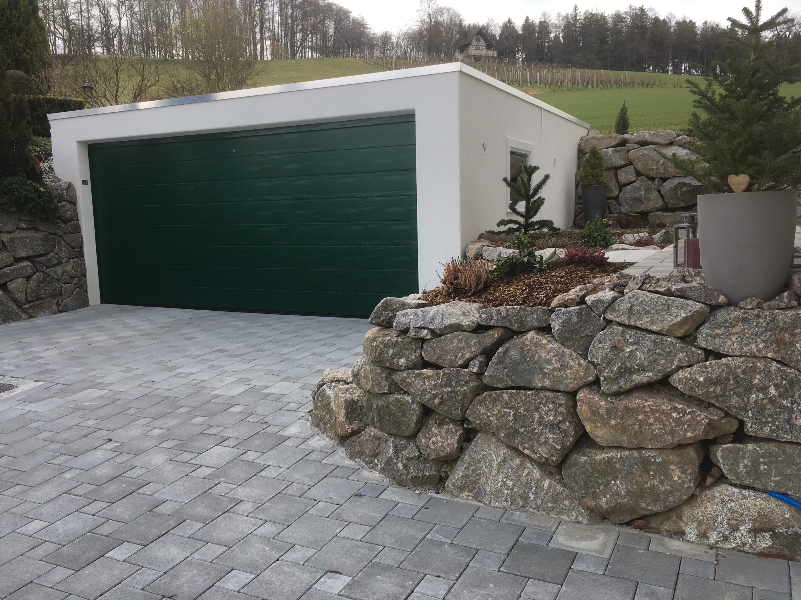 Sektionaltor, in RAL 6005 Moosgrün, Durchfahrtsbreite: 5 m