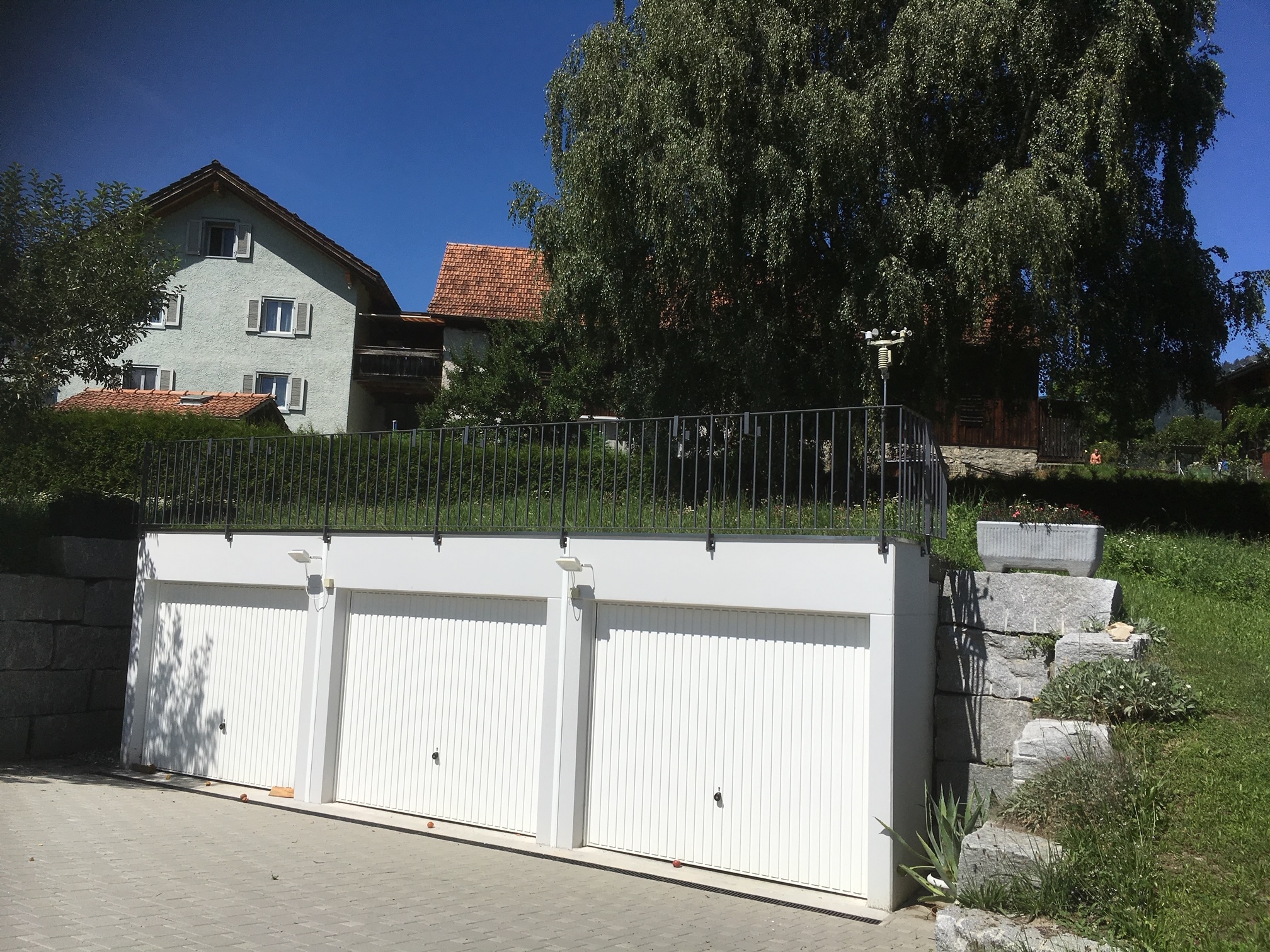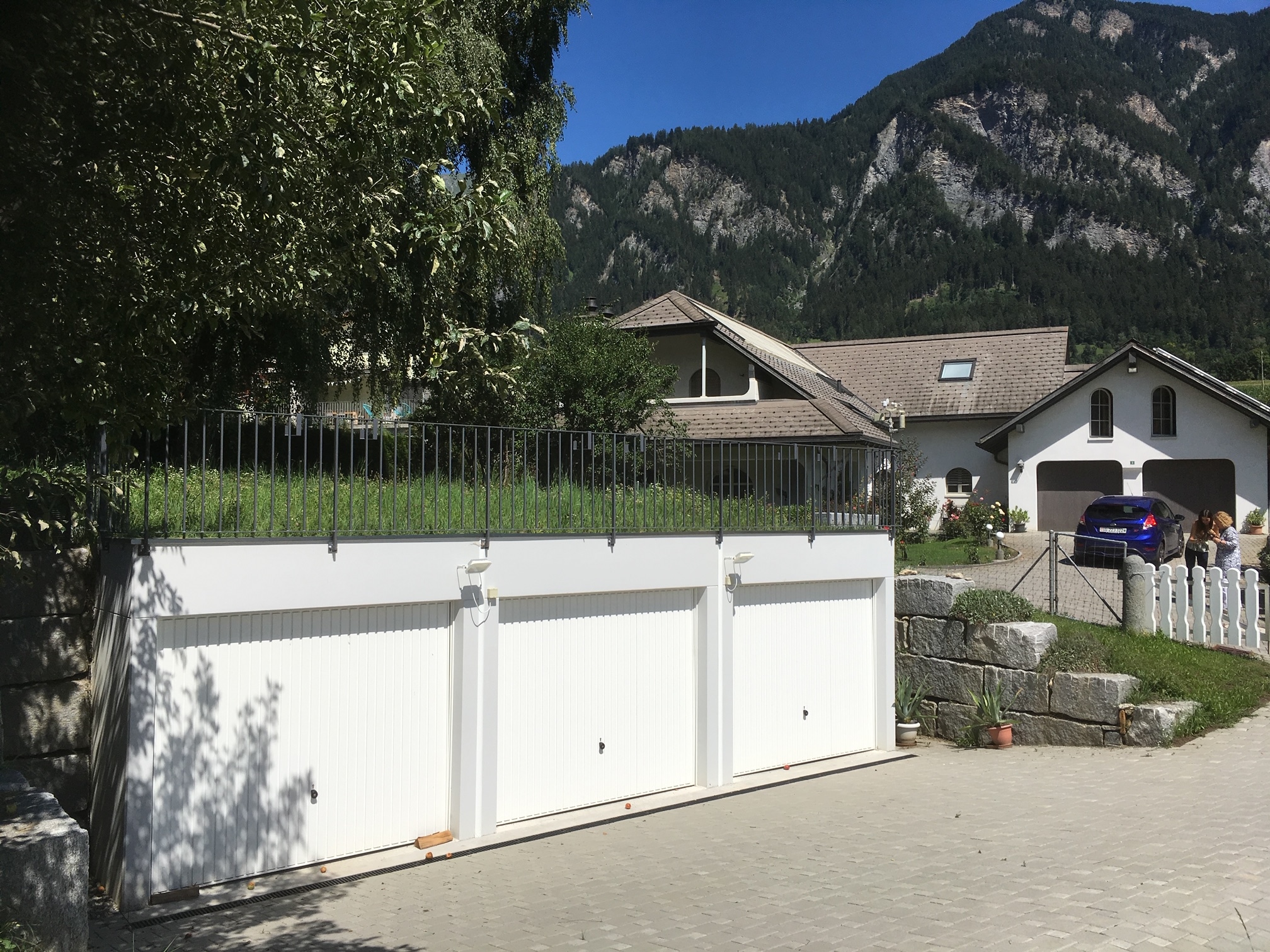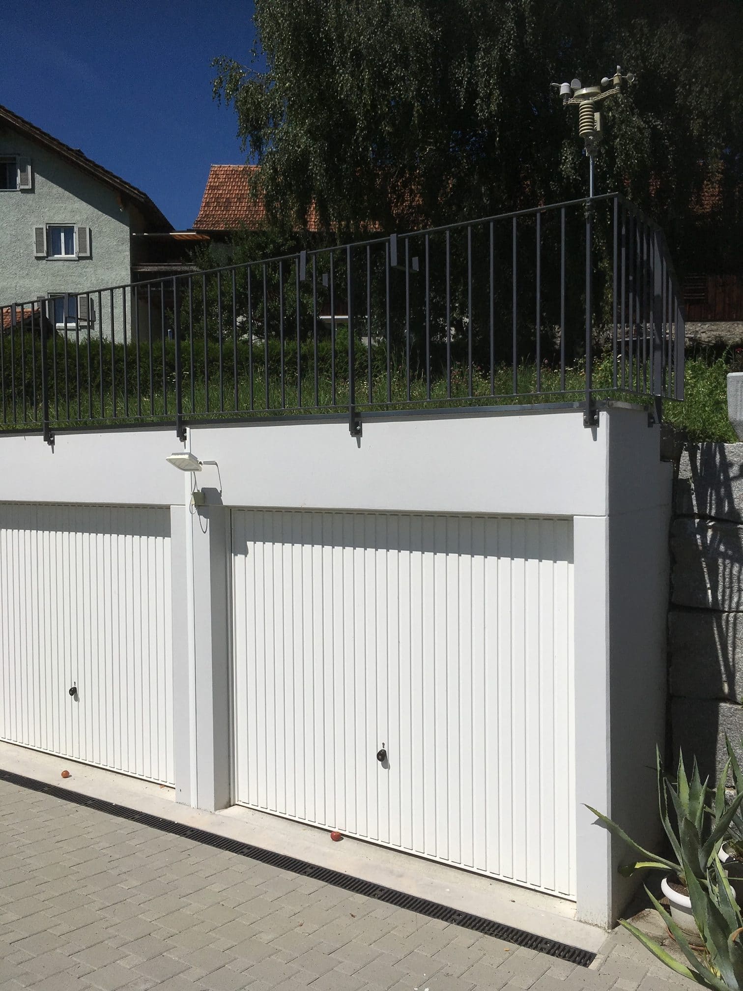 Metallkipptor, in verkehrsweiss mit Betonbrüstung zur Erdanfüllung