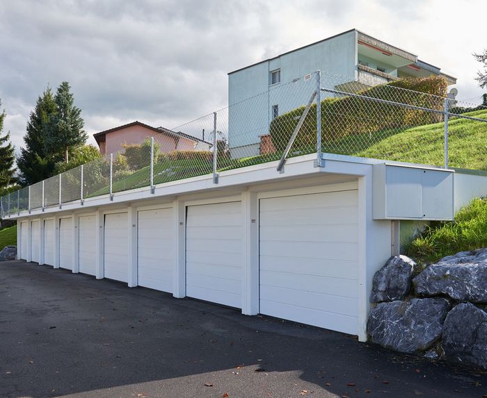 Die Kundschaft war Besitzer eines "kleinen Restgrundstückes" in der Bauzone liegend, welches aber ungeeignet respektive zu klein war, um darauf ein Wohngebäude zu erstellen. Garagenplätze werden jedoch immer nachgefragt und sind deshalb auch "Mangelware". Deshalb wurde die PFAFF AG angefragt, ob es möglich wäre, bei dieser erheblichen Hanglage preiswerte Fertiggaragen zu erstellen. Im Auftrage der Kundschaft wurde durch die PFAFF AG ein Projekt für besonders komfortable Massiv-Garagen mit zusätzlichem Stauraum ausgearbeitet. Die Baubehörde konnte dazu rasch grünes Licht geben und somit konnte der notwendige Aushub und die Hangsicherung, sowie die Fundamente innert kurzer Zeit erstellt werden. Infolge der Zusatzlängen und der grossen Tor-Durchfahrtshöhen wurden sofort genügend Mieter/Eigentümer gefunden werden. Für die Bauherrschaft war es eine sehr sinnvolle und absolut lohnende Investition.